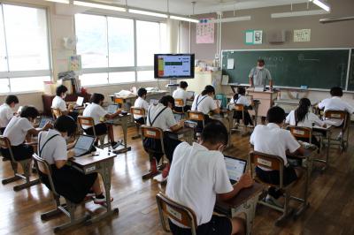 2学期から来ていただいてるALTの先生ですが、大洲での生活にも慣れ、日本語がとても上手になっています。